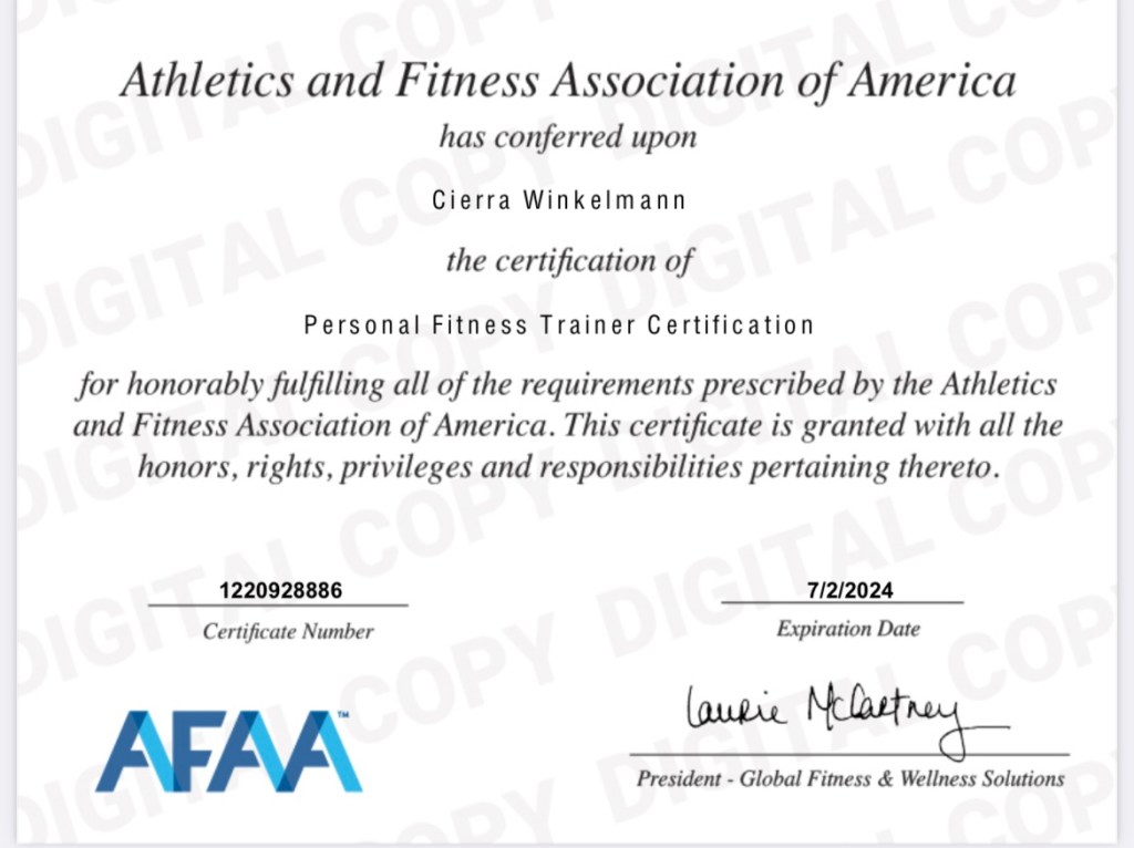 Welcome to my fitness blog – Zone. My name is Cierra Winkelmann and I am a certified trainer through AFAA. Here on my blog I will help inspire and teach you the proper methods of getting into better health and shape.